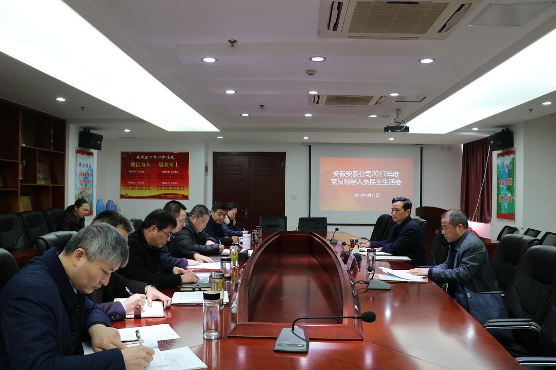2月26日,安徽安裝公司召開2017年度黨員領(lǐng)導(dǎo)人員民主生活會(huì)。集團(tuán)公司黨委副書記牛曙東、黨委工作部主任徐文聯(lián)到會(huì)指導(dǎo)。會(huì)議由公司黨委書記、副總經(jīng)理胡六中主持,公司領(lǐng)導(dǎo)班子成員參加會(huì)議。
