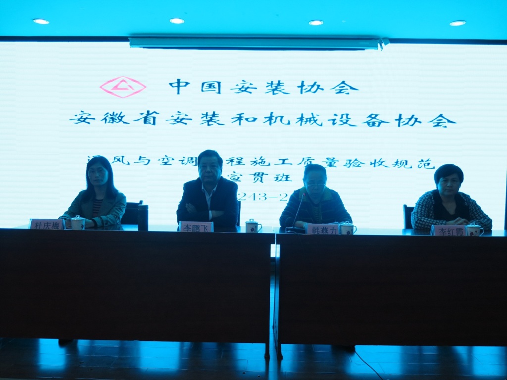 2017年11月10日,由中國安裝協會主辦,安徽省安裝和機械設備協會承辦的《通風與空調工程施工質量驗收規(guī)范》(GB50243-2016)宣貫班在安徽合肥成功舉辦。這是中國安裝協會與安徽省安裝和機械設備協會首次合作開展培訓。來自北京、山西、江蘇和我會會員單位負責人、技術負責人、工程師等相關人員200多人參會。安徽省安裝和機械設備協會副會長李鵬飛作了開班動員,中國安裝協會培訓班主任韓燕力提出基本要求。