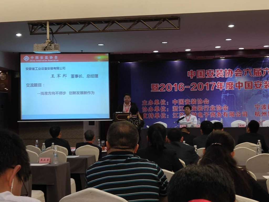 2018年4月24日,安徽省安裝和機械設備協會參加中國安裝協會在寧波召開的六屆六次理事(擴大)會議暨2016-2017年度中國安裝協會科學技術進步獎頒獎大會。各省、自治區、直轄市安裝協會(分會)、會員單位地區聯絡組負責人,協會理事與科技進步獎獲獎單位代表等近300人參加會議。我會會長王軍邦攜副會長李鵬飛、秘書長杜慶梅及部分會員單位代表分別參會。