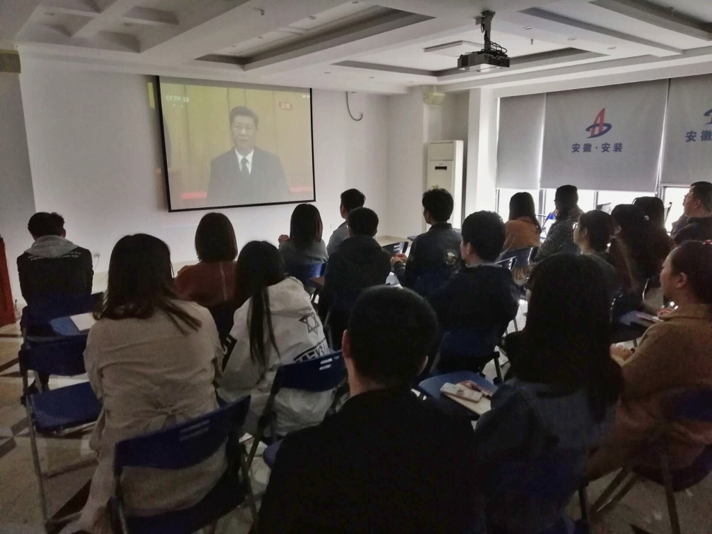 4月30日10時(shí)30分,紀(jì)念五四運(yùn)動(dòng)100周年大會(huì)在人民大會(huì)堂舉行。安徽安裝團(tuán)委組織團(tuán)員青年集中收看了大會(huì)直播,大會(huì)在莊嚴(yán)雄偉的國(guó)歌中拉開(kāi)序幕,習(xí)近平總書(shū)記發(fā)表重要講話(huà)。