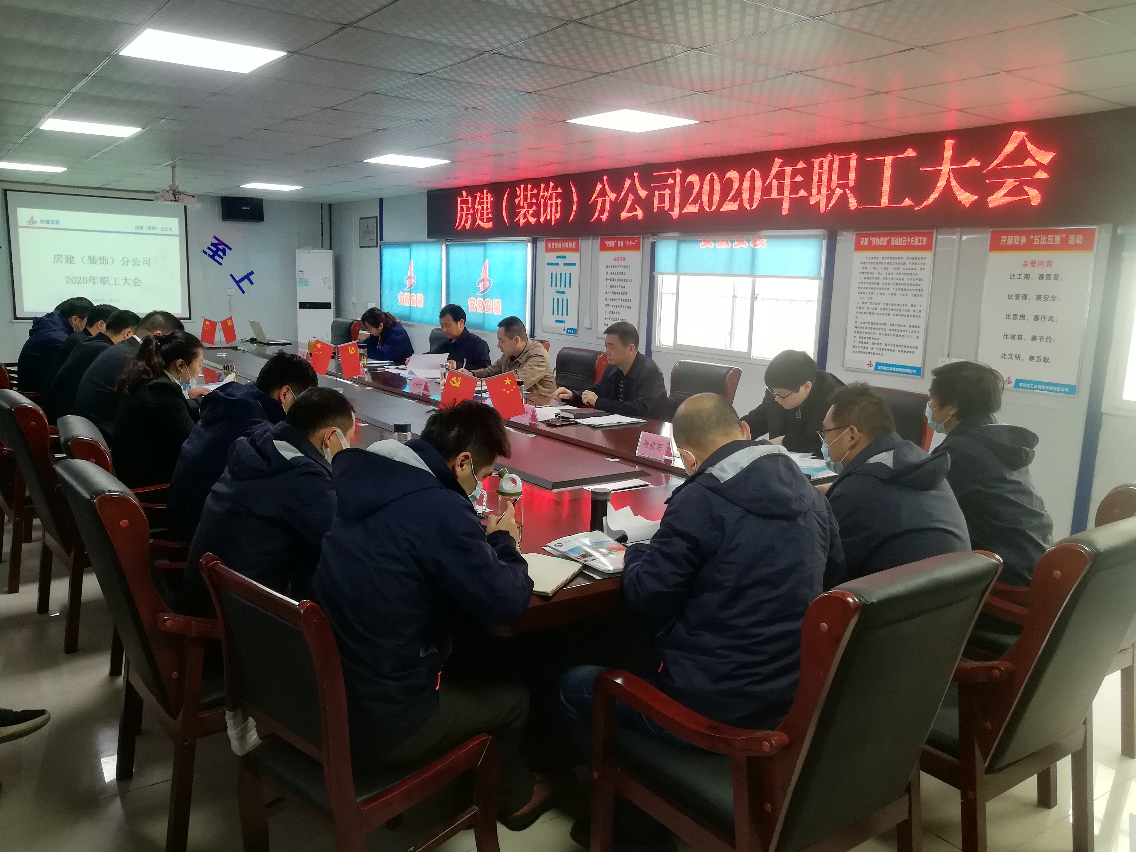 4月8日上午,安徽安裝公司房建(裝飾)分公司在阜陽市潁東區中醫院建設PPP項目部召開2020年職工大會。公司黨委書記、董事長胡六中,副總經理高飛,紀委書記、工會主席李寬旭出席大會,人力資源部負責人及黨辦相關人員、分公司班子成員及機關、阜陽市潁東區中醫院建設PPP項目、淮北恒基城項目部分員工參加會議。會議由分公司黨支部副書記張曼主持。