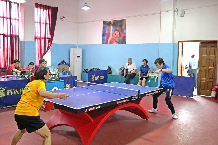 乒乓球隊員劉萍在比賽場中奮力拼搏