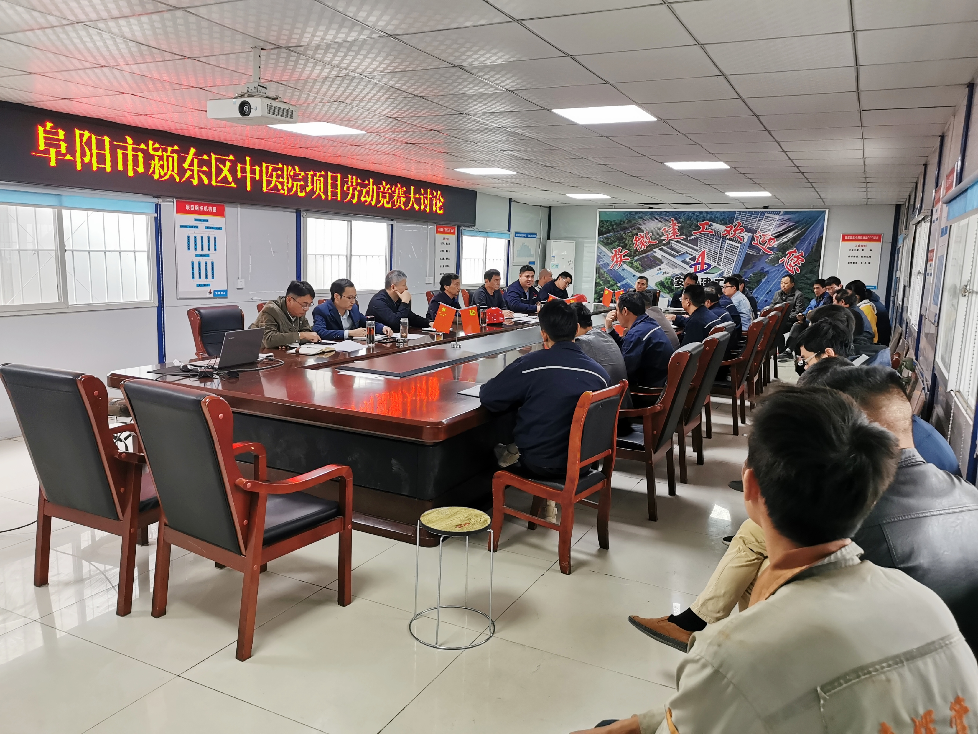 為認真貫徹集團公司“戰疫情、搶工期、保目標、促超產”勞動競賽活動精神,11月5日上午,公司副總經理高飛,紀委書記、工會主席李寬旭,總工程師吳繼成一行在阜陽潁東區中醫院建設PPP項目部會議室,組織開展“戰疫情、搶工期、保目標、促超產”勞動競賽大討論,公司相關部門負責人、項目部全體人員30余人參加了會議,會議由李寬旭主持。