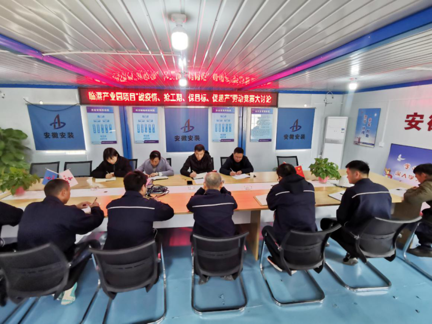 為認(rèn)真貫徹集團(tuán)公司“戰(zhàn)疫情、搶工期、保目標(biāo)、促超產(chǎn)”勞動(dòng)競賽活動(dòng)精神,11月19日下午,安徽安裝公司圍繞“不能按時(shí)交工為恥辱”的履約意識(shí),在臨港項(xiàng)目部會(huì)議室組織開展“戰(zhàn)疫情、搶工期、保目標(biāo)、促超產(chǎn)”主題大討論活動(dòng)。公司紀(jì)委書記、工會(huì)主席李寬旭,公司相關(guān)部門負(fù)責(zé)人,蚌埠分公司領(lǐng)導(dǎo)班子成員,項(xiàng)目管理人員等共計(jì)20余人參加會(huì)議,會(huì)議由李寬旭主持。