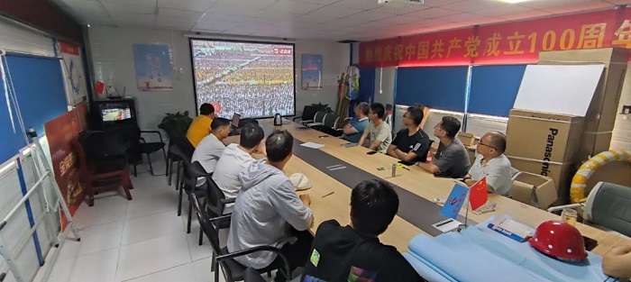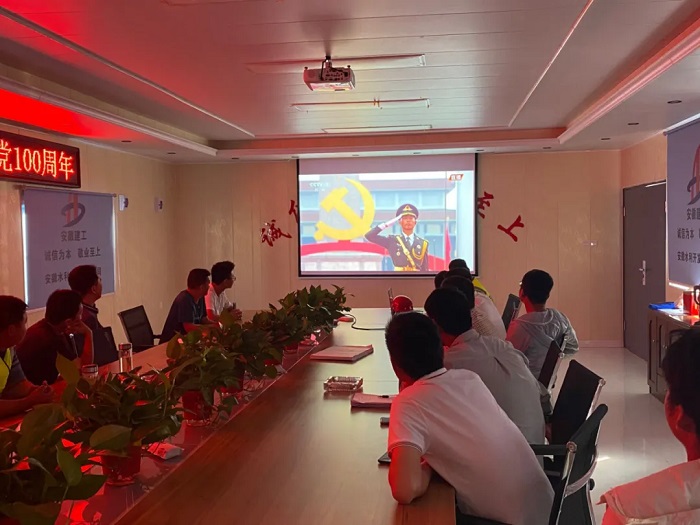 上午8點整,慶祝中國共產黨成立100周年大會在北京天安門廣場隆重舉行,中共中央總書記、國家主席、中央軍委主席習近平發表重要講話。與此同時,安徽安裝所屬各單位、各基層黨組織、各項目一線紛紛第一時間組織職工群眾收聽收看大會直播。