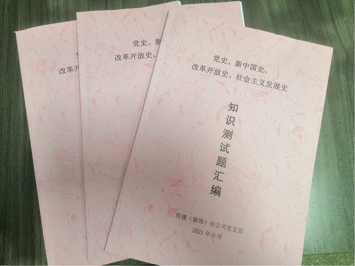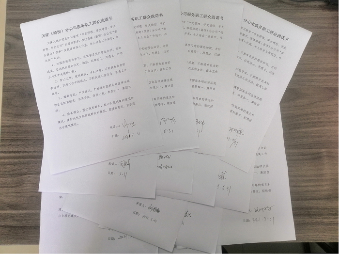 會議最后,所有與會人員簽訂了《房建(裝飾)分公司服務職工群眾踐諾書》,布置下發(fā)了《黨史、新中國史、改革開放史、社會主義發(fā)展史知識測試題匯編》。