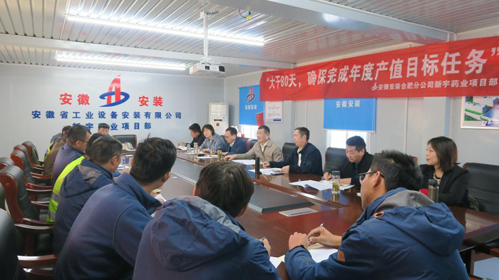 10月18日,安徽安裝在合肥分公司新宇藥業(yè)項目部組織開展了“大干80天,確保完成年度產(chǎn)值目標任務(wù)”勞動競賽大討論,公司紀委書記、工會主席李楊,黨委委員、副總經(jīng)理趙伯平,公司工程管理部經(jīng)理龍海健及合肥分公司領(lǐng)導(dǎo)班子成員、工會負責同志、競賽項目管理人員等參加。