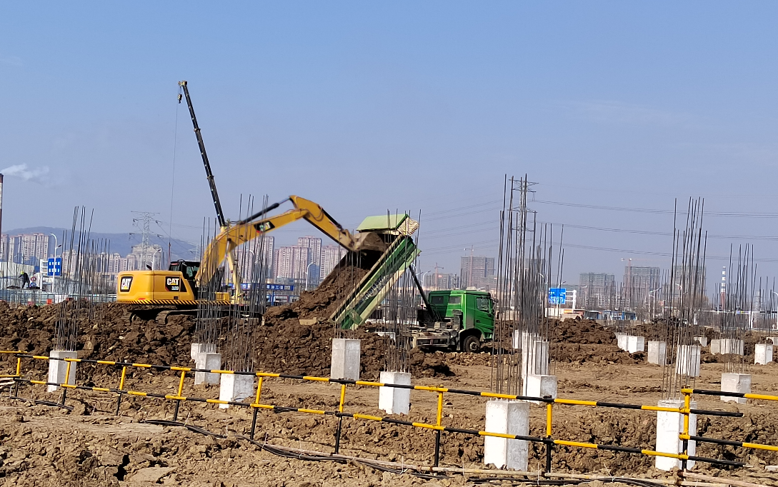 現(xiàn)場隨處可見的挖掘機、裝載車、吊車的轟鳴聲與工人師傅們緊張忙碌的工作場景交織在一起,勾勒出一派繁忙、壯觀、熱火朝天的節(jié)日大干火熱場景。