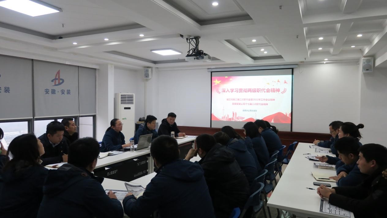 通過對兩級職代會精神的宣貫,使大家對集團(tuán)和公司2021年取得的可喜成績有了深刻的了解,也進(jìn)一步明確了2022年各項工作的思路、奮斗目標(biāo)和工作重點。在學(xué)習(xí)中,公司總經(jīng)理助理、合肥分公司黨支部書記、經(jīng)理趙永峰還結(jié)合分公司實際進(jìn)一步解讀了分公司2022年各項工作任務(wù)和目標(biāo),圍繞著公司職代會提出的“以項目管理年為抓手,堅持穩(wěn)中求進(jìn),深化改革創(chuàng)新,加快轉(zhuǎn)型升級,著力提質(zhì)增效”等重點工作談了自己的切身體會。