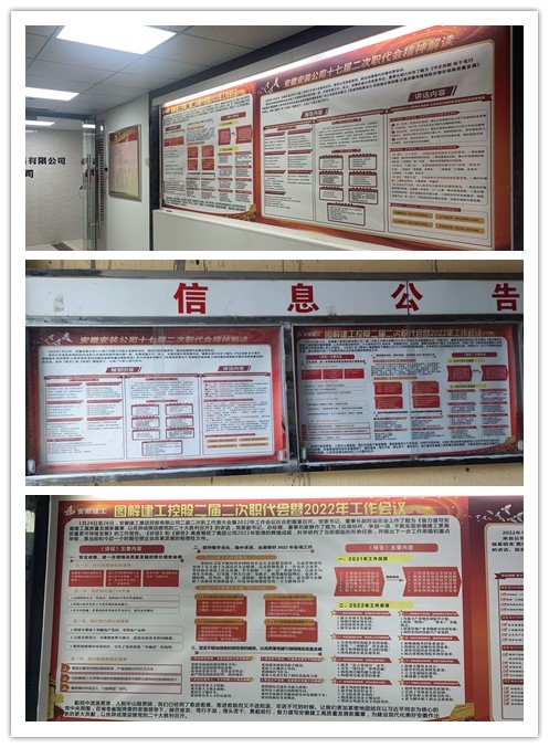 為統(tǒng)一思想,營造良好氛圍,分公司領(lǐng)導(dǎo)帶頭學(xué),黨支部利用支委會、機(jī)關(guān)(項目部)專題學(xué)習(xí)會、班子理論學(xué)習(xí)會、黨員活動日以及下發(fā)會議精神圖解、張貼宣傳欄、深入基層一線宣講等多種形式,迅速掀起學(xué)習(xí)宣貫集團(tuán)二屆二次職代會暨2022年工作會議和公司十七屆二次職代會精神的熱潮。