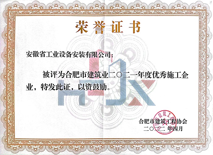 近日,合肥市建筑工程協(xié)會傳來喜訊,2021年度合肥市優(yōu)秀企業(yè)、單項先進企業(yè)的評選已出爐,安徽安裝再次斬獲“合肥建筑業(yè)優(yōu)秀施工企業(yè)”“合肥建筑業(yè)安全管理先進企業(yè)”榮譽稱號。