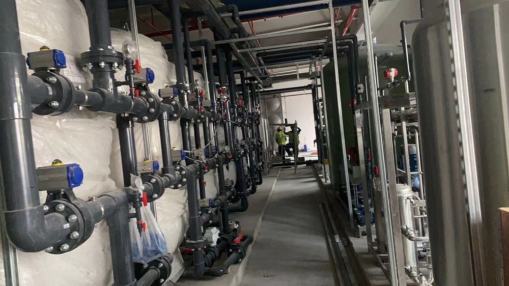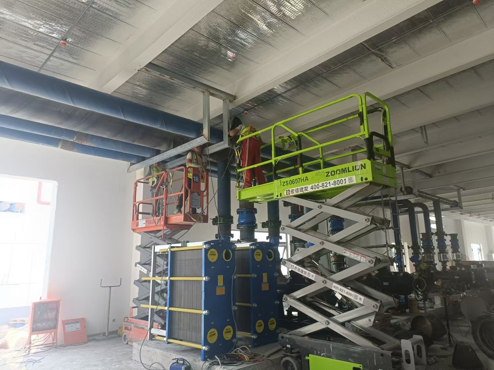 目前項目施工現場100多名工人各司其職,正在進行PO1廠房1-3層的水電、動力空調水、裝飾裝修、通風、保潔、保溫等相關施工作業。與此同時,頂樓冷水機房管道、屋面中溫冷水機組、冷卻塔、純水機房的安裝施工也在同步推進。