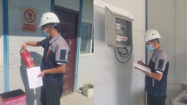 疫情期間張天在項目部例行安全檢查