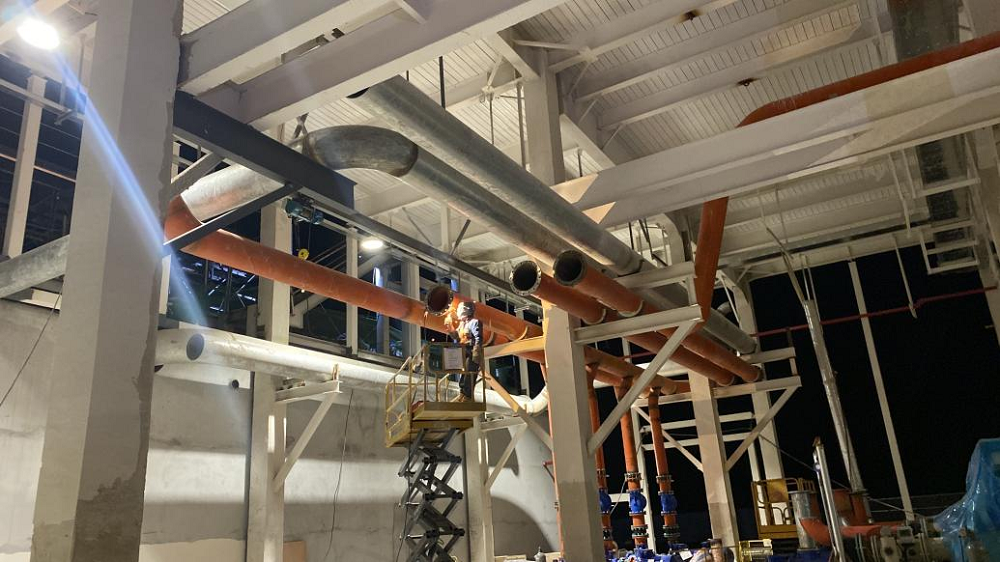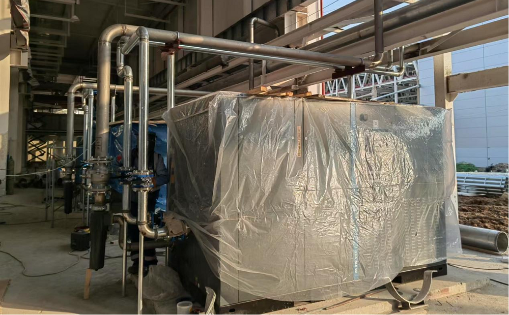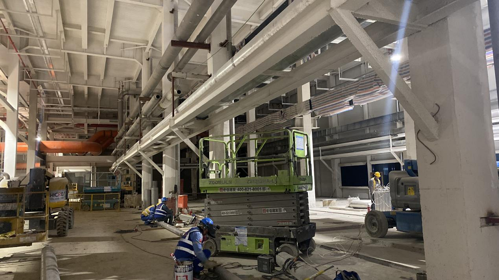 站房一(能源中心)作為整個廠區(qū)的“發(fā)動機”,建筑面積雖僅有11000平方米,但單體機電安裝造價約8000萬元,施工內(nèi)容涵蓋空壓站、污水處理站、高效制冷機房、消防泵房及給水加壓站房等全廠幾乎所有核心“部件”。面對施工工藝復(fù)雜、工期緊、標準高且施工過程中設(shè)計變更頻繁、設(shè)備供貨周期長、資金不到位等多種不利因素,項目部積極想辦法克服困難,采取主動對接各方資源,深化設(shè)計確認、督促設(shè)備批量排產(chǎn)、加快技術(shù)交底完成、倒排施工計劃等一系列有效措施,堅持“搶進度、抓質(zhì)量、保安全”核心思想不動搖,加班加點推進項目建設(shè)。截至目前,站房一(能源中心)形象進度已完成55%以上,實現(xiàn)產(chǎn)能過半,為確保關(guān)鍵合同節(jié)點“2025年2月28日公用動力系統(tǒng)調(diào)試完成,并具備各生產(chǎn)條件”打下堅實基礎(chǔ)。