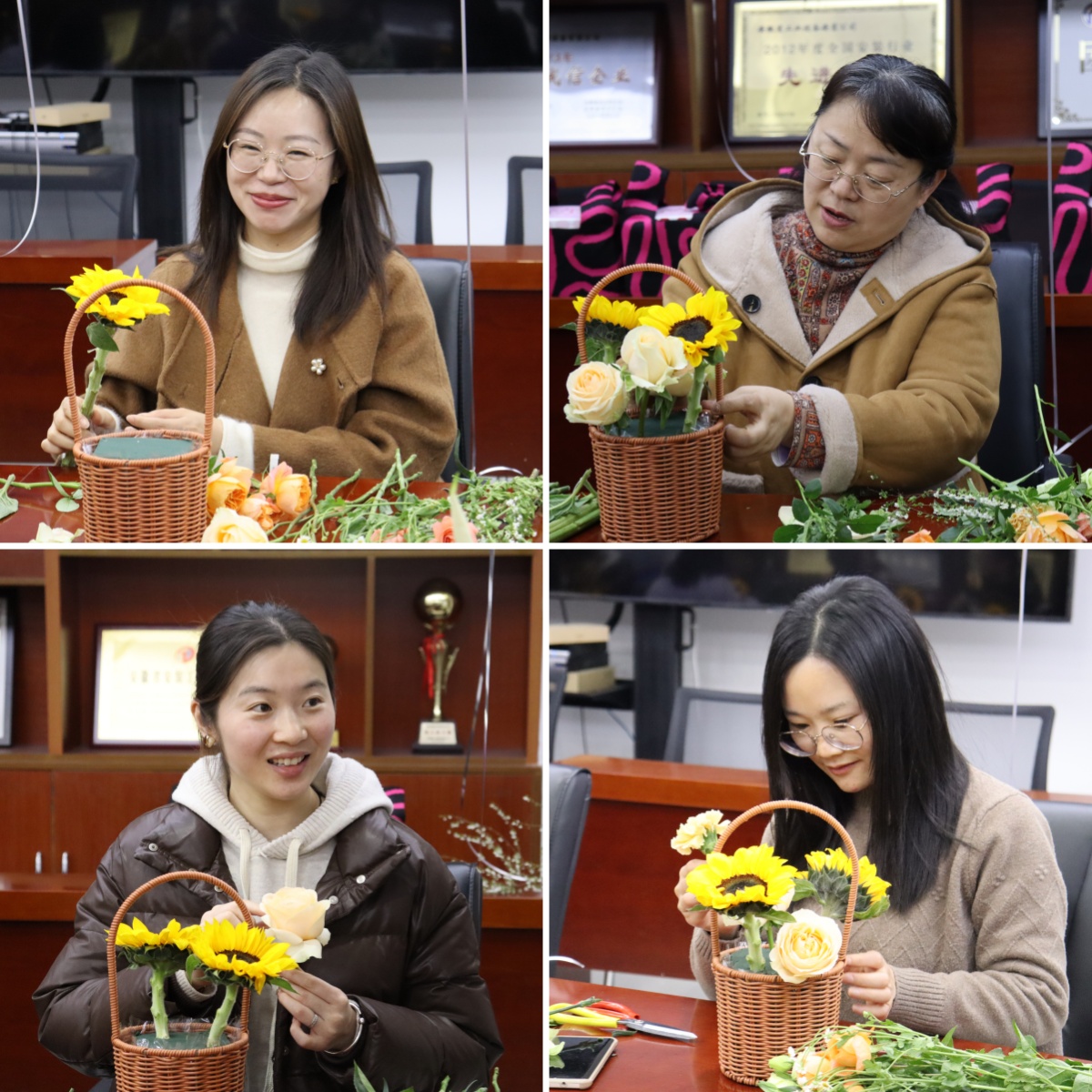 活動(dòng)現(xiàn)場(chǎng)花香四溢,充滿著春天的氣息,專業(yè)花藝師從花材特性、色彩美學(xué)到造型構(gòu)思向大家進(jìn)行了系統(tǒng)講解并進(jìn)行了現(xiàn)場(chǎng)演示。女職工們興致盎然、躍躍欲試,充分發(fā)揮自己的想象力,以高漲的熱情投入到插花創(chuàng)作中,紛紛化身“春日設(shè)計(jì)師”,將玫瑰的熱烈、百合的芬芳、向日葵的陽(yáng)光巧妙組合,在修剪與構(gòu)思中展現(xiàn)女性的細(xì)膩匠心。大家一邊插花創(chuàng)作,一邊互相交流著自己的想法和創(chuàng)意,現(xiàn)場(chǎng)充滿了歡聲笑語(yǔ)、其樂(lè)融融。