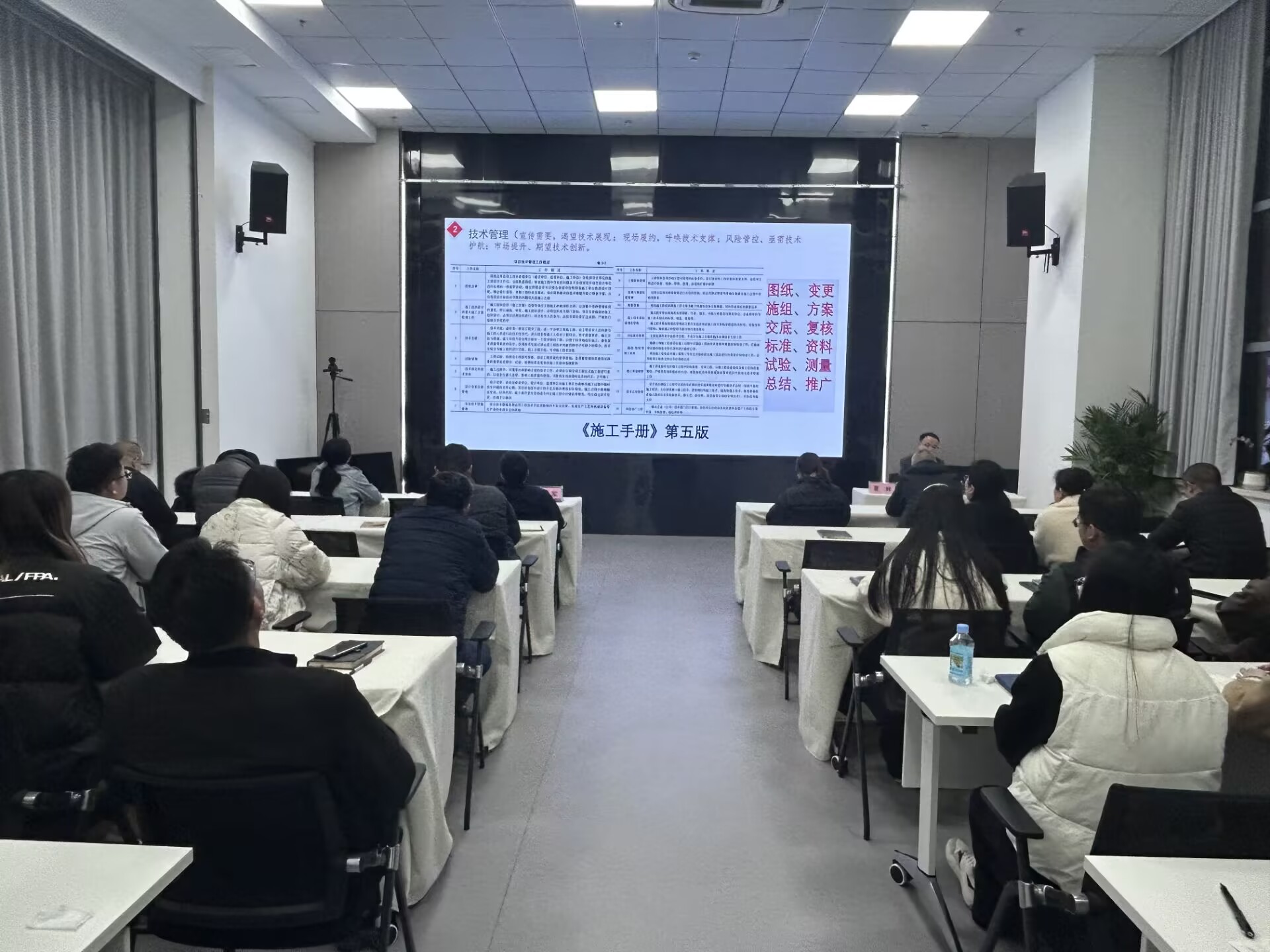 夏輝以中央發布的《一張思維導圖帶大家看2025年政府工作十大任務》的切入點,強調了高質量發展和創新驅動的重要性。隨后他從技術管理、機電工程體系、機電工程安裝工藝細部節點做法優選、AI應用等方面對機電工程基礎知識進行了細致解讀,講解了技術在企業運營中的核心作用。就《聚焦機電主責主業 走“專精特強”之路行動方案》(第一版)與參培人員進行深入交流。
